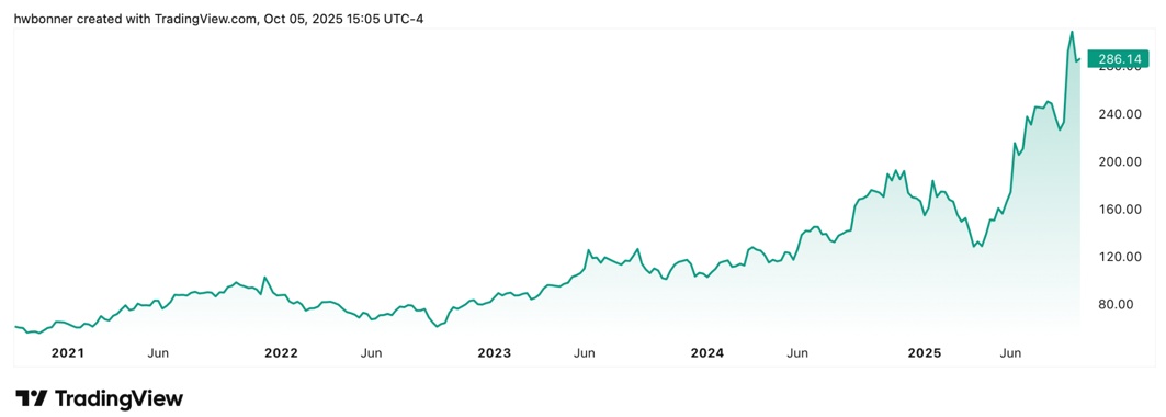 “Le Wall Street Journal a rapporté qu’OpenAI avait signé un contrat d’achat de puissance de calcul de 300 milliards de dollars auprès d’Oracle sur environ cinq ans, l’un des plus importants contrats ‘cloud’ jamais signés, qui dope le backlog « RPO » [les revenus futurs sur les contrats] du groupe de Larry Ellison à 455 milliards de dollars au total (+359%).”