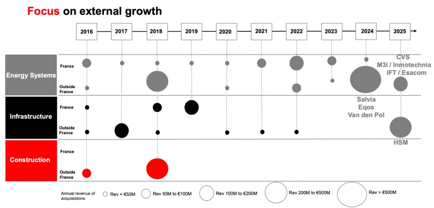 Le tableau ci-dessous de la présentation de la mi-2025 montre le développement des activités dans le secteur des énergies via des acquisitions.
