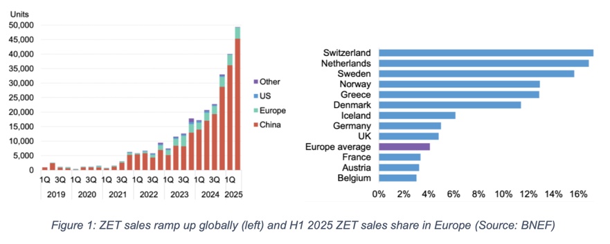 En particulier, l’association demande des mesures pour les fourgonnettes et les camions. Ils mettent en avant les avancées de la Chine dans les ventes de camions électriques, comme vous le voyez ci-dessous (source), comme preuve d’une demande pour ces modèles.